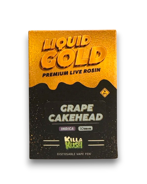 Indulge in the delicious and soothing experience of Liquid Gold Grape Cakehead Live Rosin Vape and elevate your vaping sessions with this exquisite blend!